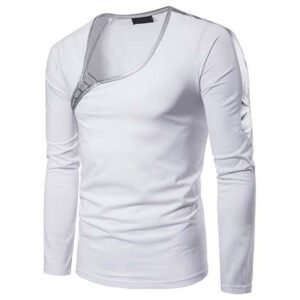 Black Full Sleeve Deep Neck T-Shirt by Blaze Impex